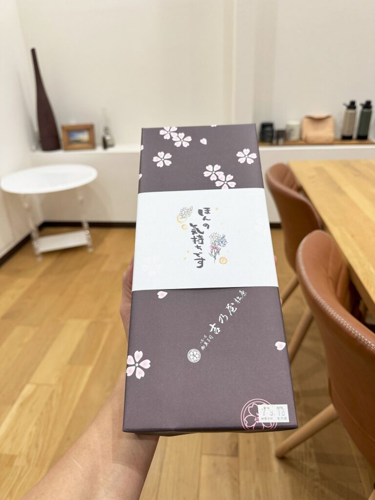せっかくなんで地元松原のもので何か渡せるものを探そう!という事で和菓子屋さんで買ってきました。