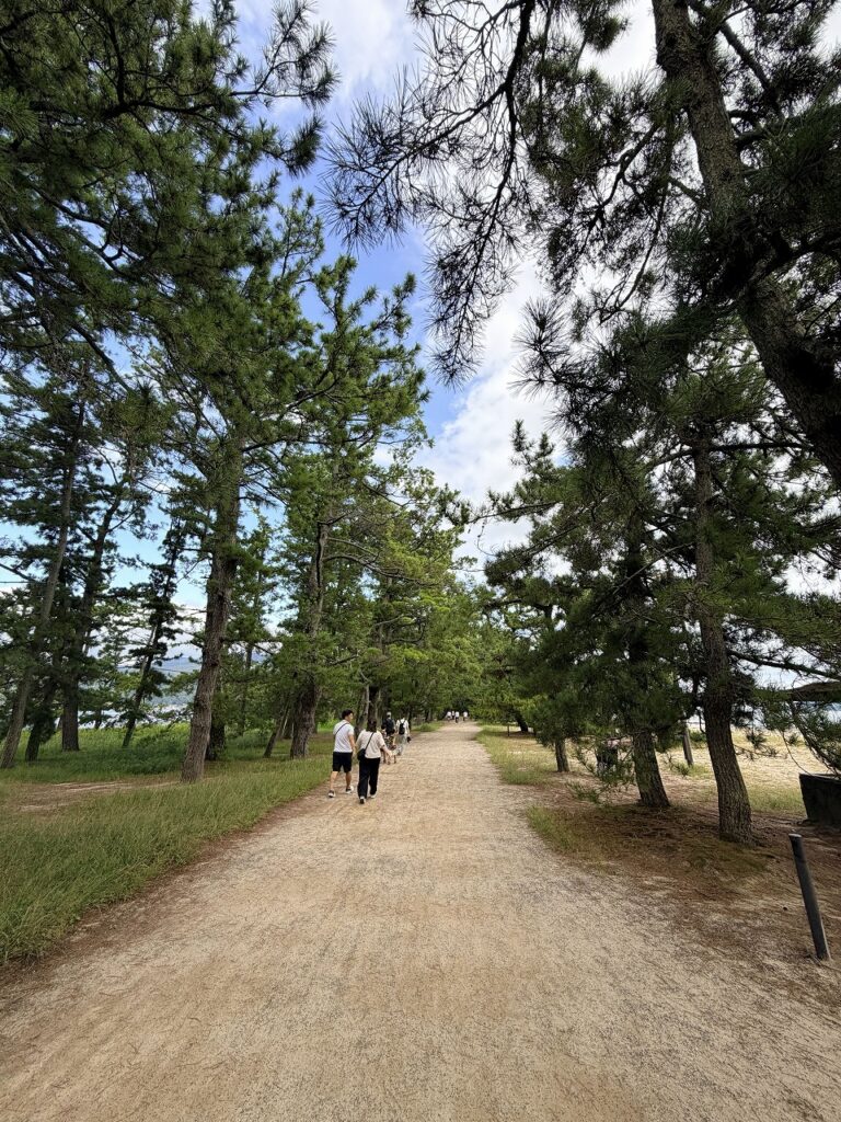 チェックアウト後、天橋立に歩いて行ってみました。昨日はボートで行ったからね。