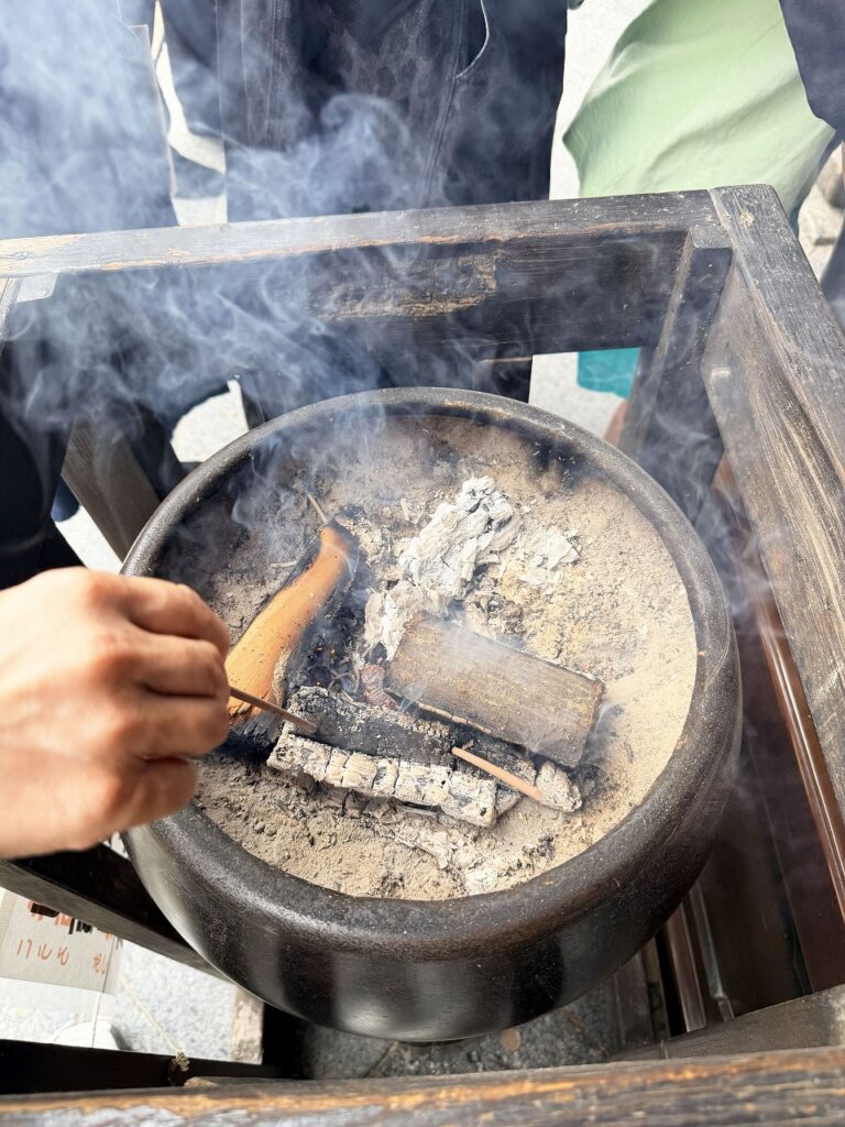 って言いながらやってるんですけど、火ついてませんでした。そら、上から手を持っていったら熱いやろ。斜めにしたら?😅