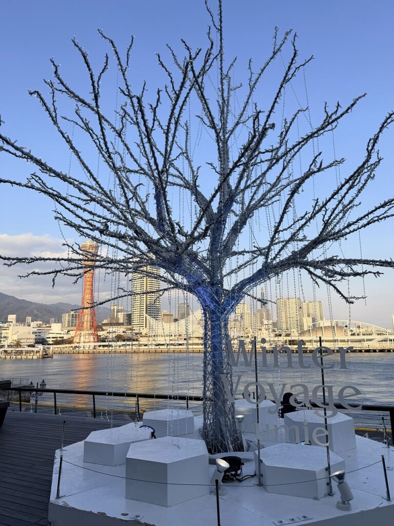 帰りに道でもそうでしたが、神戸はイルミネーションが綺麗で今イベントとかもやってるのかな?ロケーションは最高やのに人はそこまで多くないんですよね。昔からある所やけど、穴場なんじゃないかな?