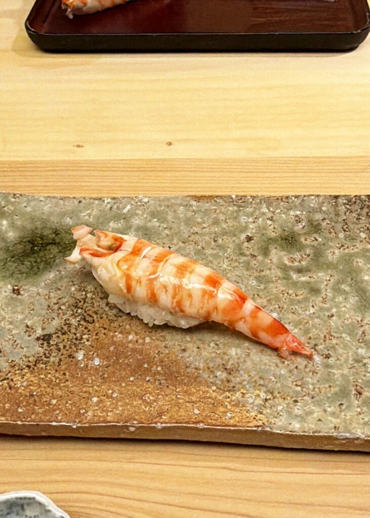 全て美味しいんですが、今回は赤身が特に美味しかった。黒糖のような甘みがフワッと広がるんです。今まで食べた赤身の中で一番美味しかった。甘えびも美味しかったな~、甘えびってこんなに美味しいんですね。これ、3周ぐらいしたいですわ😁