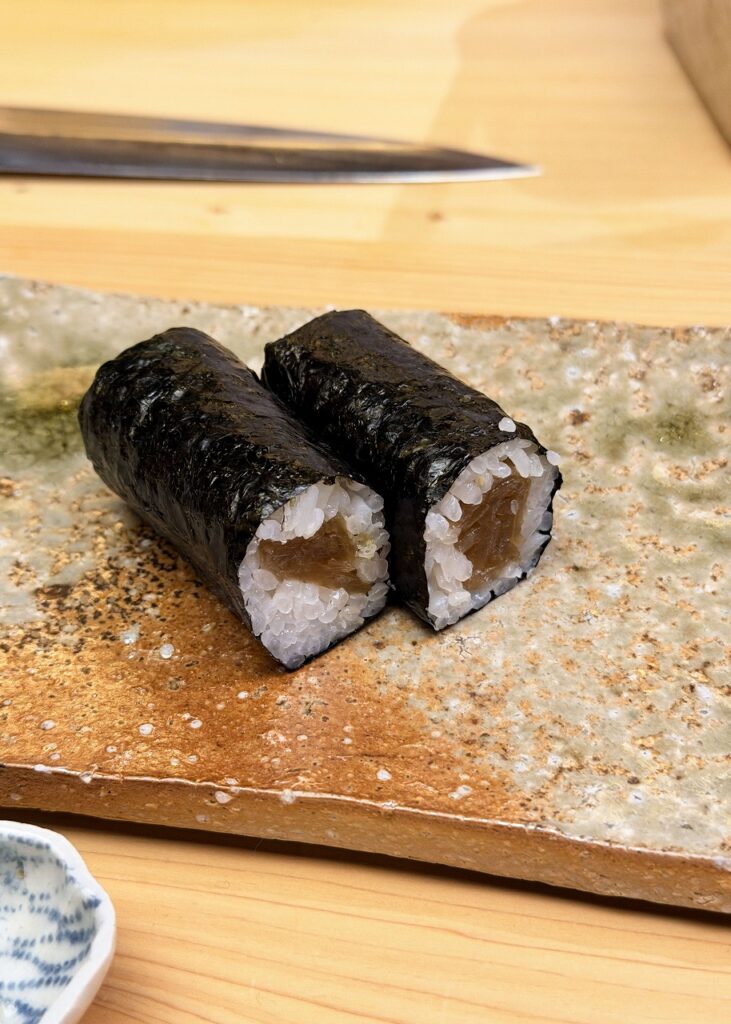 そして、最後に追加で頼みました。トロたく!これむっちゃ好き!最後の締めはかんぴょう巻きで😊このかんぴょう巻き最高に美味しいんですよ。あ~幸せやった。