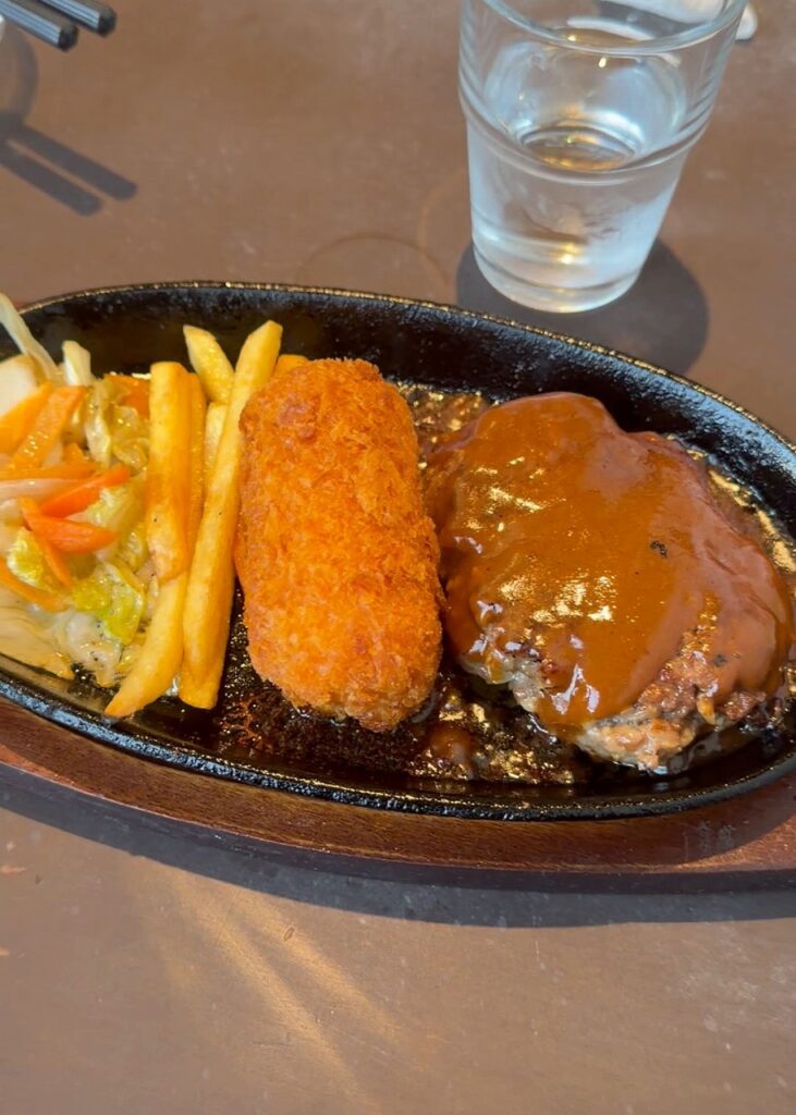 私が頼んだのはハンバーグとクリームコロッケのプレート。