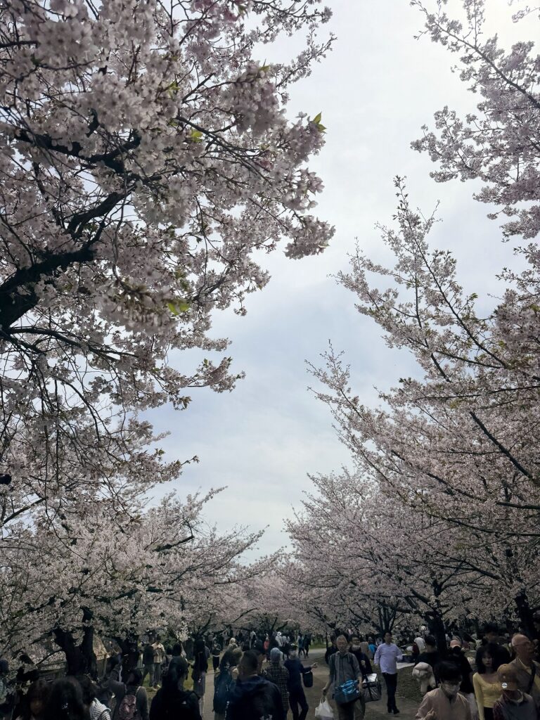 わざわざ、大阪城まで花見に行きましたけど、毎朝歩いている土手の横の桜が一番きれいでしたわ。