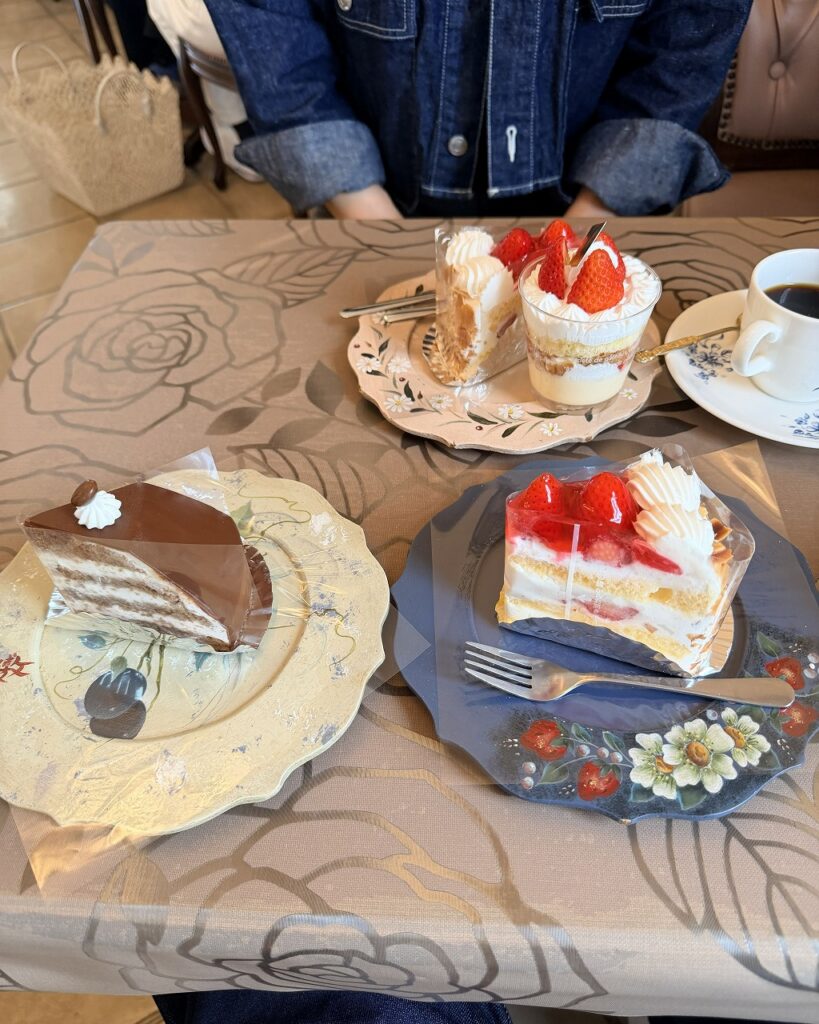 ケーキは見た目は昔近所にあったごく普通のケーキ屋さんのケーキでした。一人二つチョイス。
